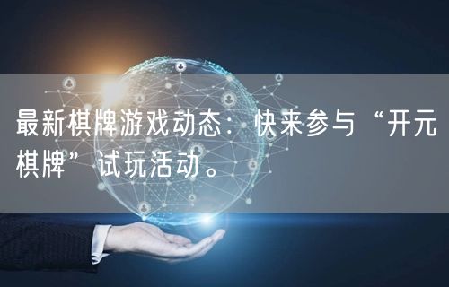 快来参与“开元棋牌”最新棋牌游戏动态试玩活动吧!体验最火爆的棋牌竞技,赢取丰厚奖励!让我们一起享受棋牌游戏的乐趣吧!