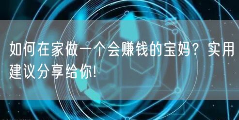 通过选择适合自己的兼职工作、合理安排时间、进行有效的网络营销、持续学习与提升以及制定合理的家庭财务规划,宝妈们可以在家实现赚钱的目标。这不仅有助于提升家庭生活质量,还能增强宝妈的自信心和成就感。希望本文的实用建议能帮助到广大宝妈们。