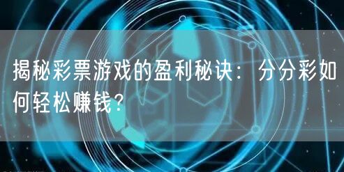 揭秘彩票游戏的盈利秘诀:分分彩如何轻松赚钱?