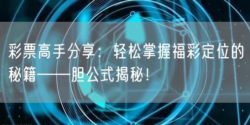 彩票,一直以来都是人们追逐梦想的舞台。然而,想要在这个舞台上轻松掌握技巧,赢得大奖,就需要一些有效的秘籍。今天,就有一位彩票高手来分享他的福彩定位秘籍——胆公式。接下来,就让我们一起揭开这个神秘的面纱,看看如何轻松掌握福彩定位的秘籍!
