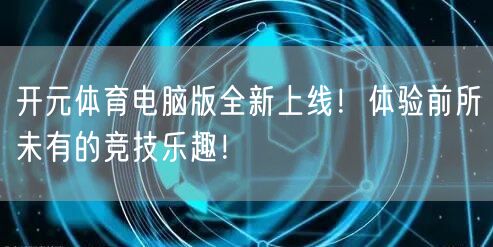 开元体育电脑版全新上线!体验前所未有的竞技乐趣!