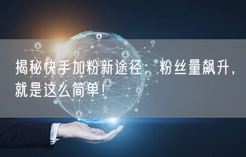 通过本文介绍的快手加粉新途径,相信你已经对如何快速提升粉丝量有了更清晰的了解。要想实现粉丝量的飙升,关键在于提供高质量内容、积极互动与回应、精准定位与推广策略以及合作与互惠互利。同时,不断学习和利用数据分析优化内容创作也是非常重要的。希望这些技巧能够帮助你在快手上取得更好的成绩!